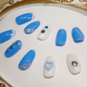 マットネイビー × メタリックブルーの幻想ネイルチップ