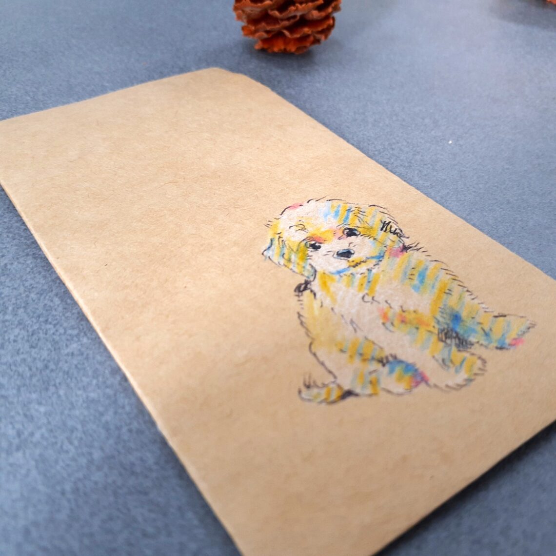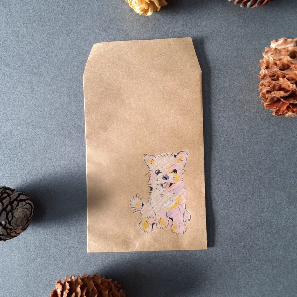 クラフト紙の素朴な風合いと、手描きならではのにじみや表情が、ほっと心和むデザインになっています。
