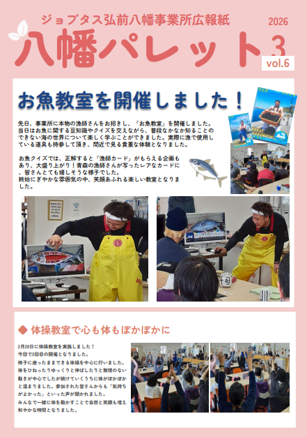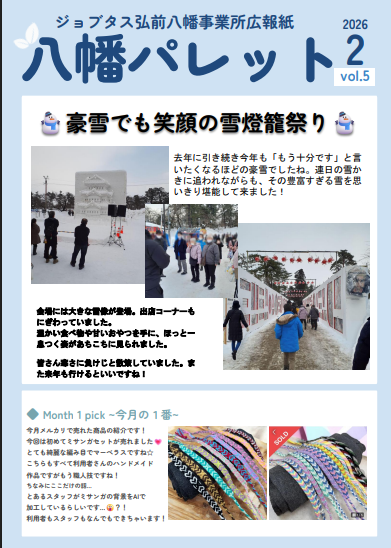 毎月の『八幡パレット』を、楽しみにされている利用者さんやスタッフさんも多いです。広報紙が掲載されると記事についてコミュニケーションの輪が広がったりするので、ジョブタス弘前八幡事業所の看板ともなる大切な存在となりました!