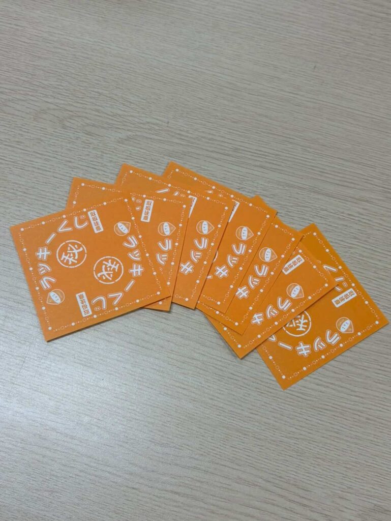 弘前市内にあるゲームや、洋服、家電などを販売しているお店から、三角くじを作るという受託を受け、行っている作業です。